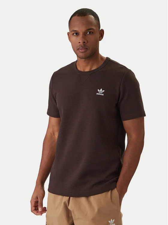 adidas Marškinėliai Trefoil Essentials Waffle KE1136 Ruda Regular Fit