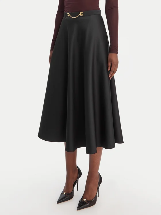 Elisabetta Franchi Midi sijonas GO-156-61E2-V320 Juoda Regular Fit