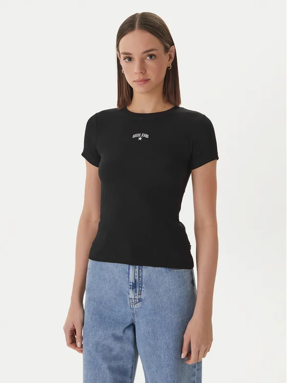 Guess Jeans Marškinėliai W6GPZ3 KA0H1 Juoda Slim Fit