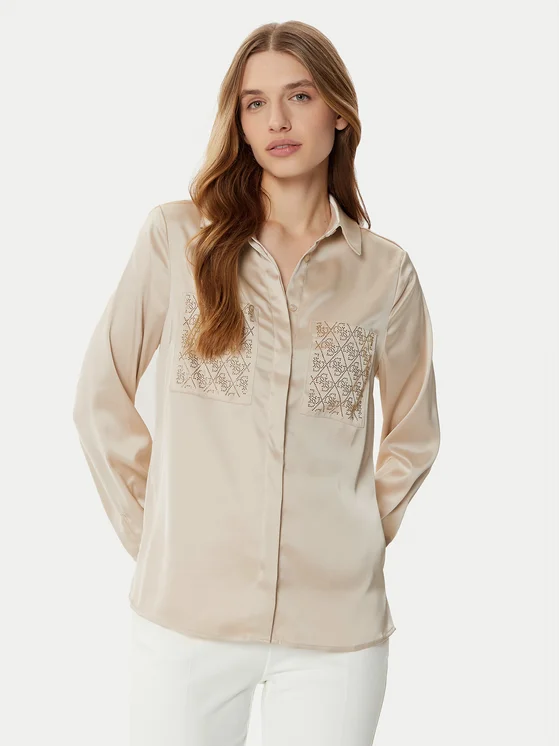 Guess Marškiniai W5RH40 WFQC2 Smėlio Regular Fit
