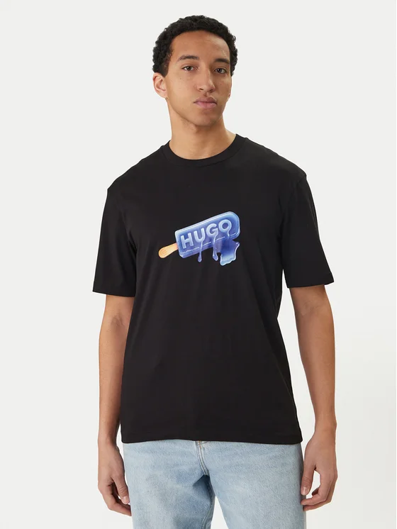 HUGO Marškinėliai 50560049 Juoda Regular Fit