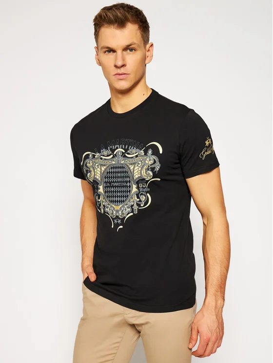 La Martina Marškinėliai RMR301 JS206 Juoda Regular Fit
