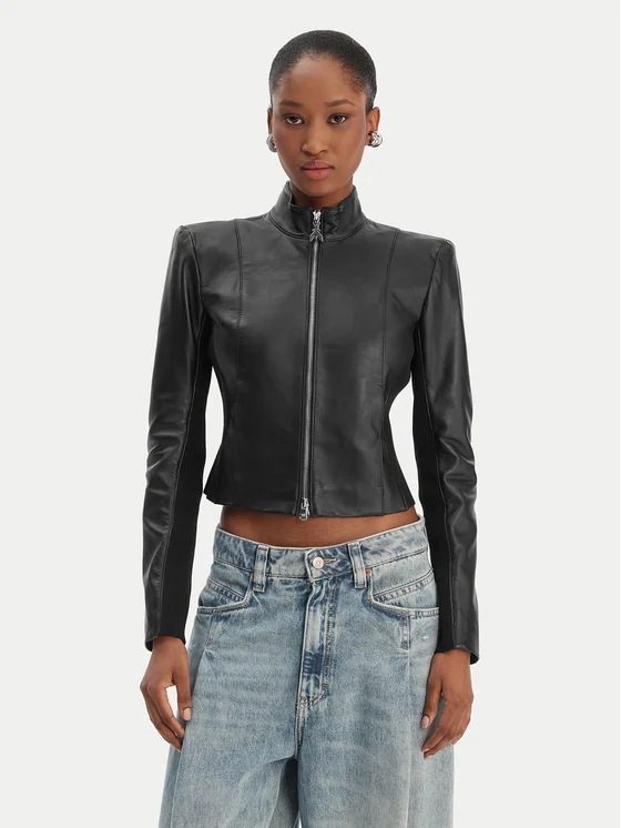 Patrizia Pepe Odinė striukė CO0001/L1HZ-K103 Juoda Regular Fit