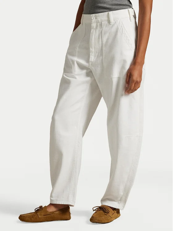 Polo Ralph Lauren Medžiaginės kelnės 211A93147001 Balta Relaxed Fit