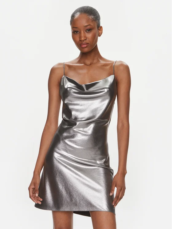 ROTATE Kokteilinė suknelė Metallic Mini Slip 1116472293 Sidabrinė Regular Fit