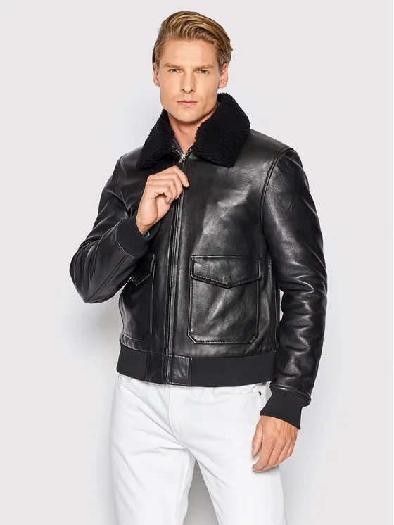 Serge Pariente Odinė striukė Style 18 Juoda Regular Fit