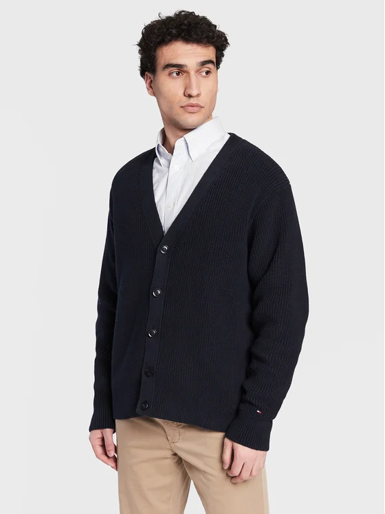 Tommy Hilfiger Kardiganas Rib Structure MW0MW29029 Tamsiai mėlyna Relaxed Fit