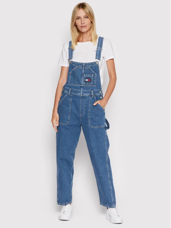 Tommy Jeans Kelnės su petnešomis Denim DW0DW11590 Mėlyna Regular Fit