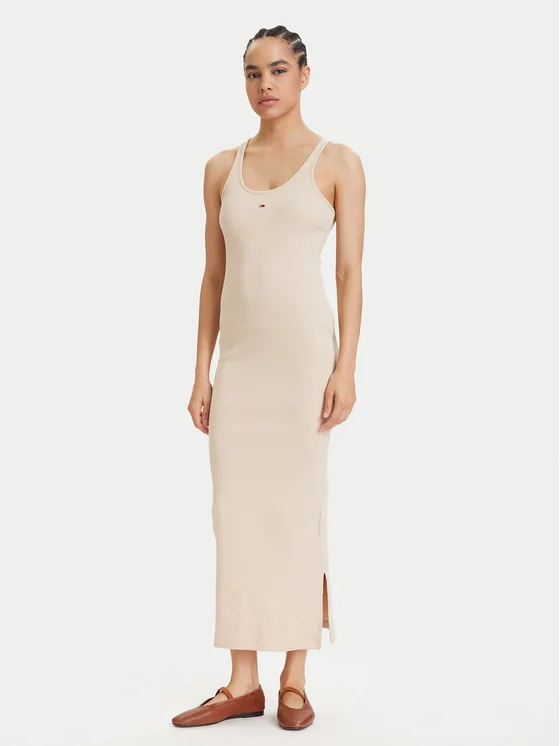 Tommy Jeans Vasarinė suknelė Racerback DW0DW22329 Šviesiai smėlinė Slim Fit