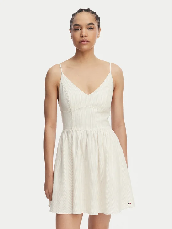 Tommy Jeans Vasarinė suknelė Skater DW0DW22345 Šviesiai smėlinė Slim Fit